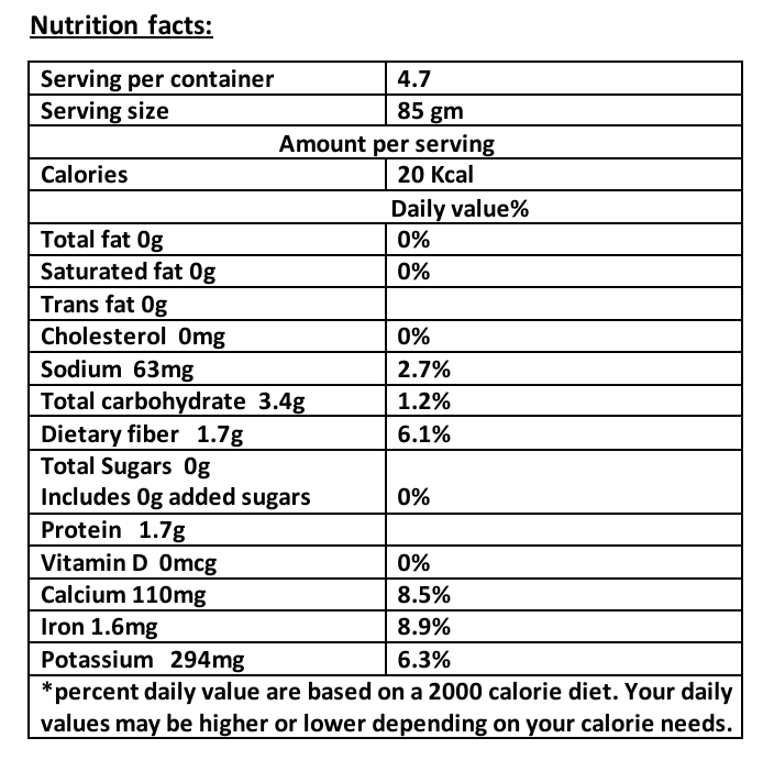 Ingredients: Spinach. Net Weight: 400g / 2.5kg / 10kg
